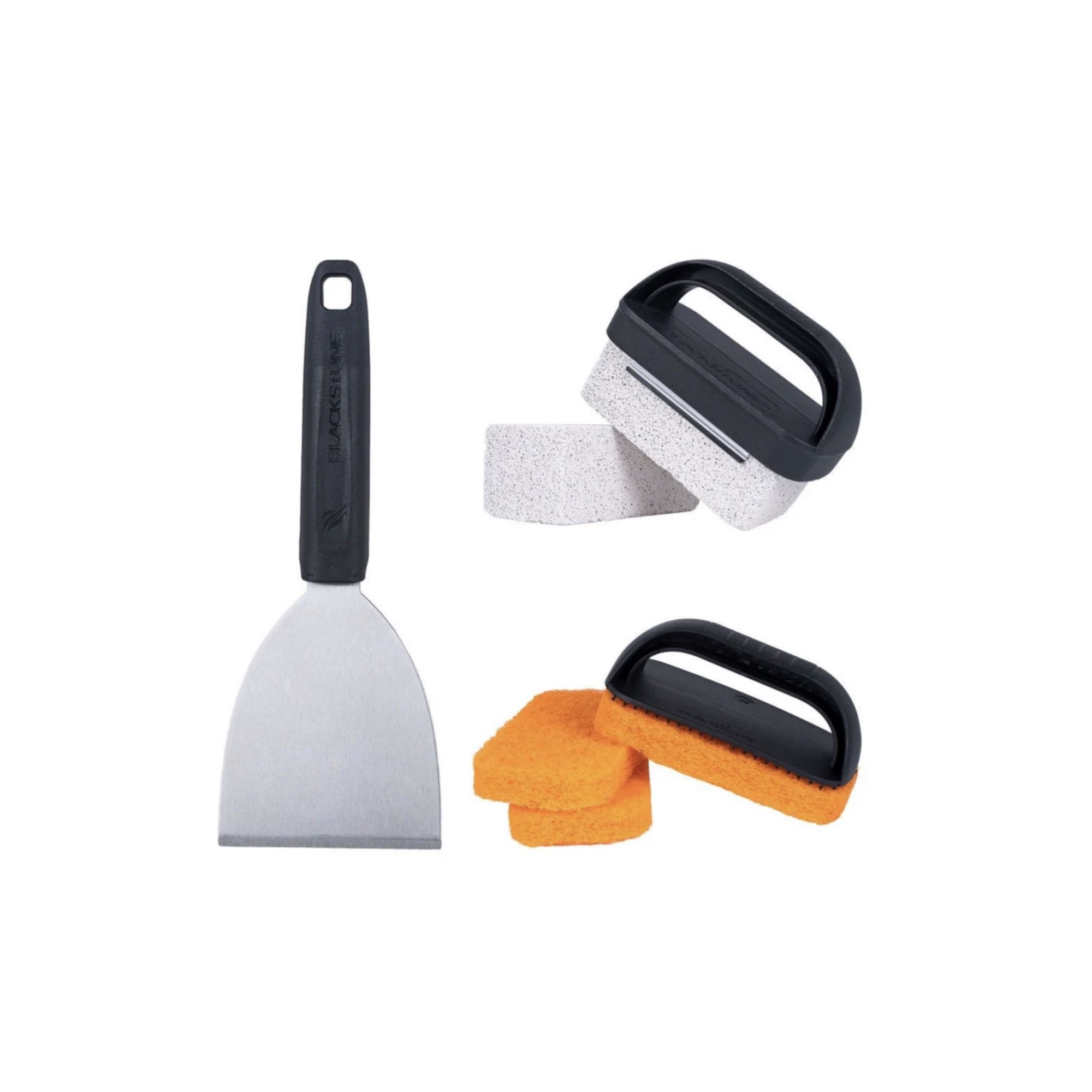 El set de limpieza para plancha plana de Blackstone es el utensilio perfecto para cualquier amante de las parrillas. Contiene un robusto rascador con mango de plástico resistente al calor, tres estropajos y dos piedras pómez para devolver el brillo a su plancha.