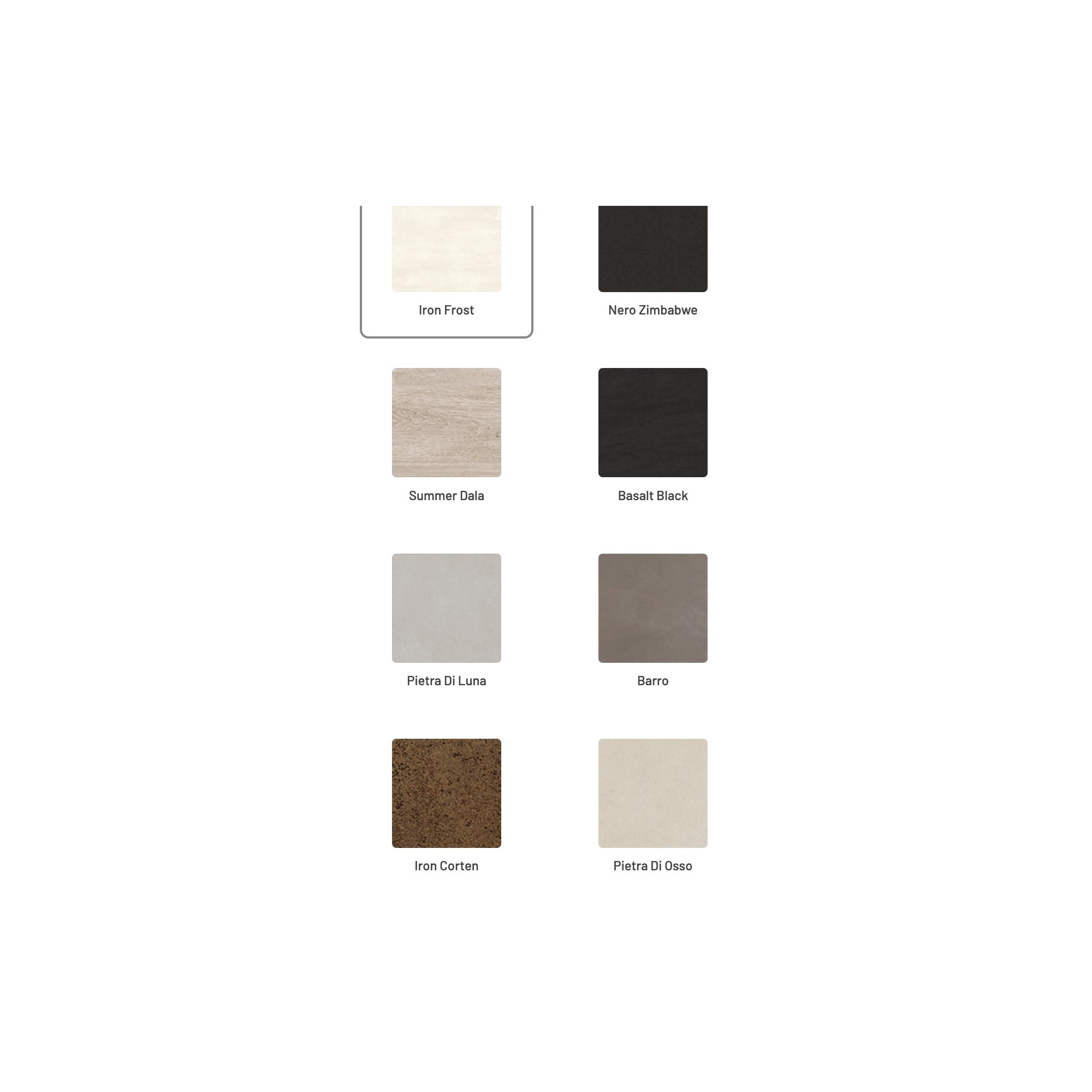 - Encimera de Neolith disponible en 7 acabados: Iron Frost, Iron Corten, Summer Dala, Basalt Black, Pietra Di Luna, Nero Zimbabwe y Pietra Di Osso. Indicar el acabado elegido en observaciones al realizar el pedido.