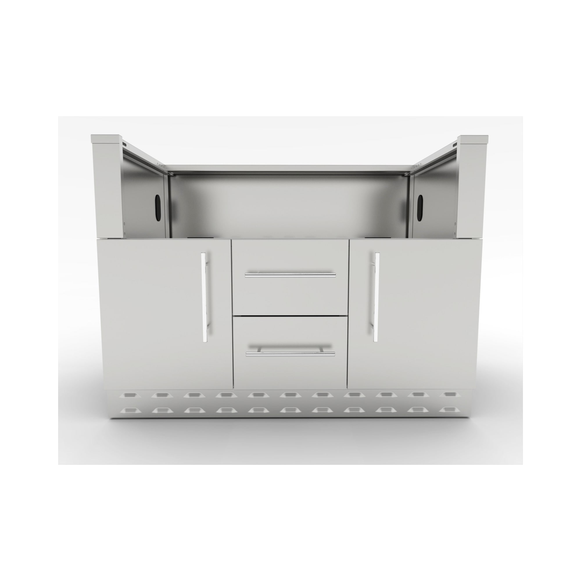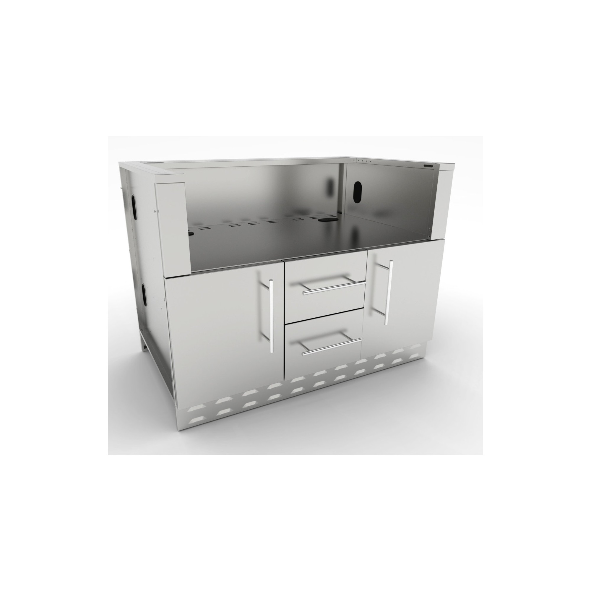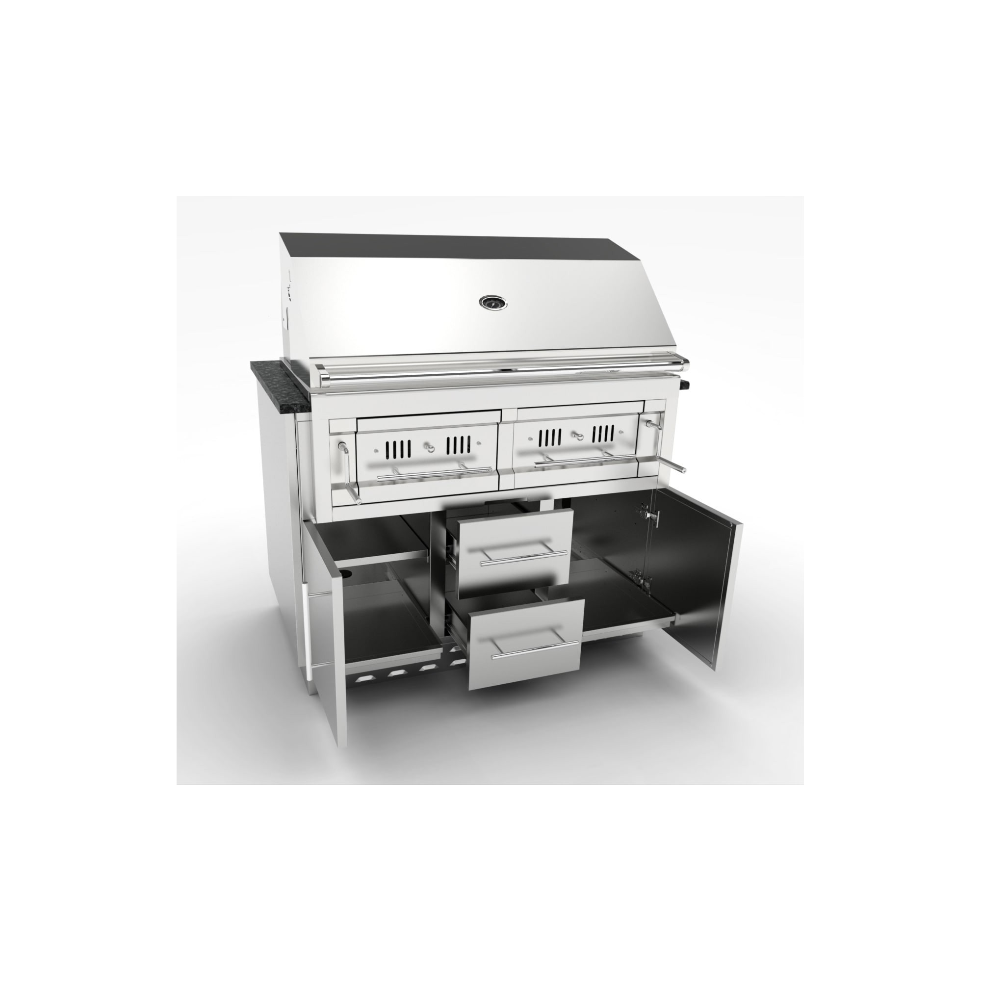 El módulo Inox. de 106,70 cm. para barbacoa híbrida, está construido enteramente de Acero Inoxidable grado 304 del calibre 16 y 18. Además de servir para la barbacoa Sunstone Híbrida de 42, este módulo también está diseñado para alojar múltiples barbacoas de gas de otras marcas del mercado.