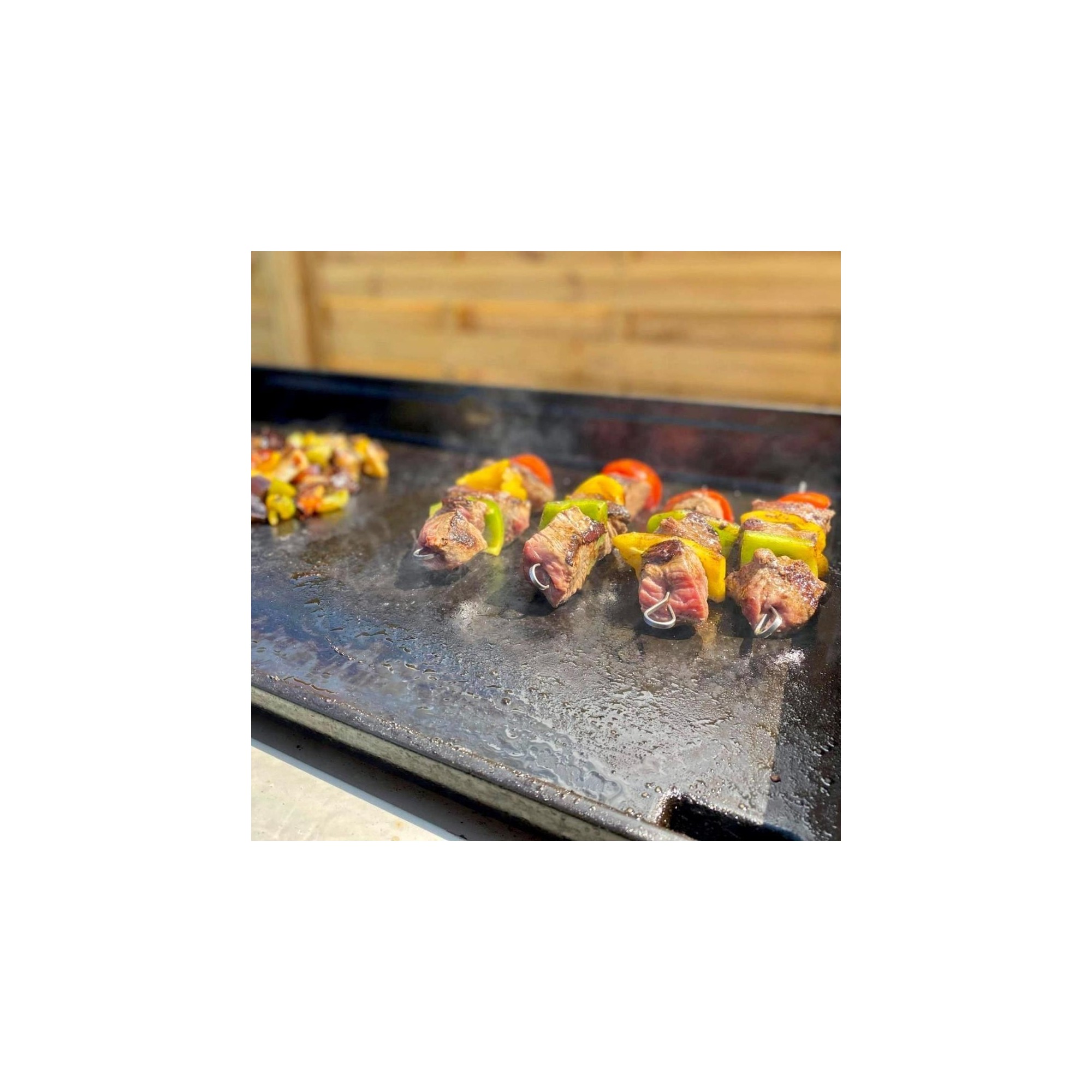 - Laterales elevados para trabajar más cómodamente y evitar posible caídas de los alimentos, además también sirven de paravientos.